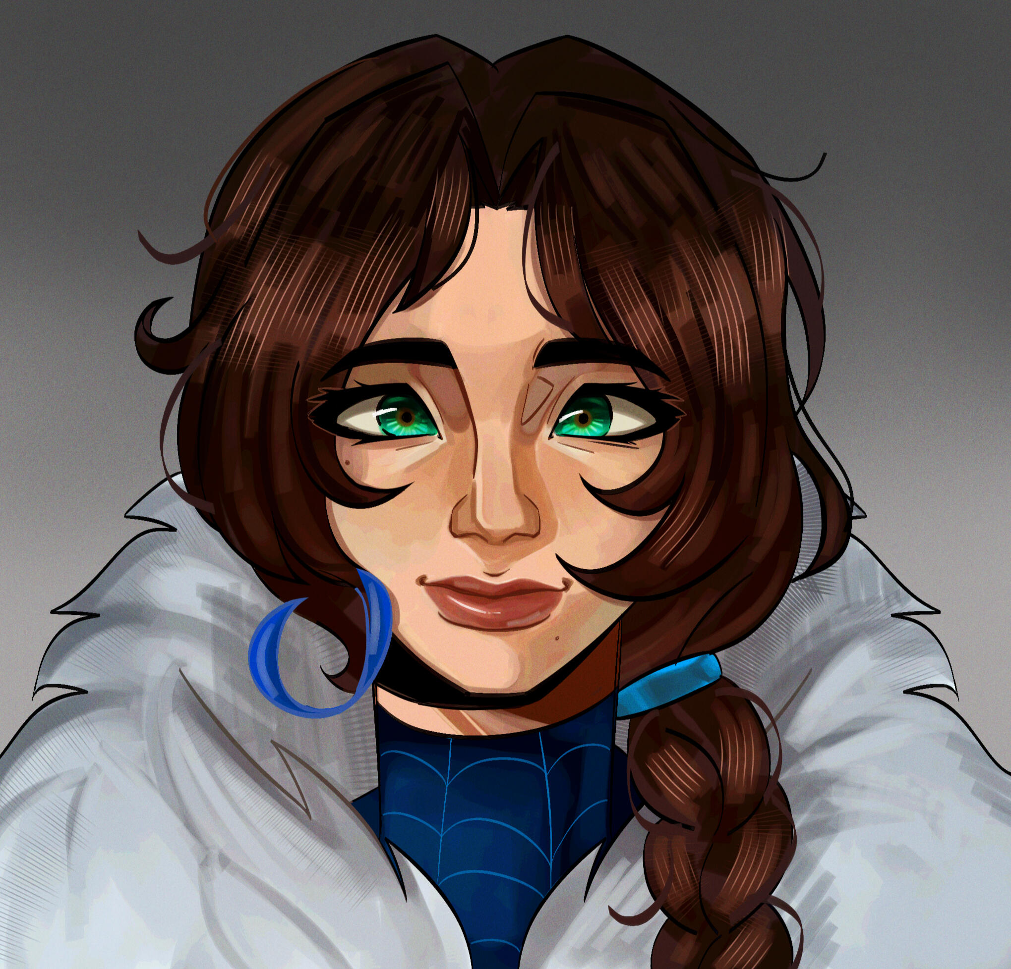 Alessa Russo is the superhero from Earth-8979 known as Azure Spider, from the year 2035. She is the only hero in the frontline against the forces of evil in her city, Saint Nova, and deems herself the people's one and only guardian.Choosing Vale as her name she acts as the only arachnid hero of her dimension, fighting off against criminals and supervillains alike completely by herself, doing whatever she can to protect the lives of the citizens of Saint Nova and to keep the city itself from being damaged by those who, in their greed, seek to monopolize her universe's unique power source, Lumen.After being the Azure Spider for essentially five years Vale was suddenly faced with the reality of the Multiverse and invited to Earth-928 in order to be thoroughly evaluated by Spider-Society and its leader, Miguel O'Hara. Deemed essential to their ranks Vale then joined Spider-Society and received her very own gizmo, enabling her to travel between dimensions freely. She used that newfound perspective to not only assist Spider-Society in preventing the destruction of the Multiverse but also to heal her lonely soul, finding comfort in being in the presence of so many Spider-People like herself.With time spent in Spider-Society Vale developed a tight-knit friendship with Peter B. Parker, LYLA, and Kinara Satrinava, often seeking them for company when her dimension is safe from any kind of trouble and when she's not needed for Spider-Society missions. Despite also having a peculiar dynamic with the leader Miguel himself Vale's tendency to joke around and take things lightly often irritates Miguel, making it so that they frequently bicker when sharing the same space. Miguel disapproved of Vale's displays of levity, constantly attempting to push her away when she sought his company.Months after joining Spider-Society Vale found herself having deep feelings for Miguel, believing such not to be reciprocated due to the leader's tendency to shut her off and to isolate himself in his duties. When things in Spider-Society begin to escalate and risks become greater, both choose to stand side by side, trusting eachother implicitly despite their differences and relying on their bond to protect eachother and the Multiverse.